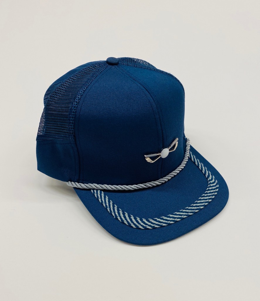 NAVY BLUE AND GRAY KHAKI MESH SIDE PANEL ADJUSTABLE GOLF HAT