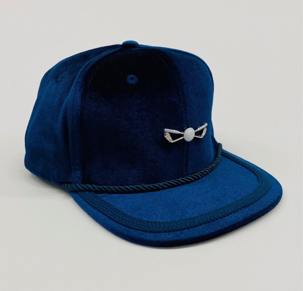 SILVER AND NAVY BLUE VELOUR ADJUSTABLE GOLF HAT