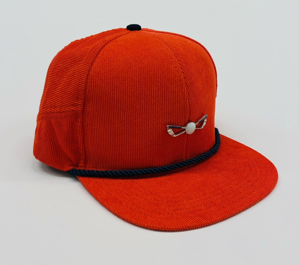 ORANGE AND NAVY BLUE CORDUROY ADJUSTABLE GOLF HAT