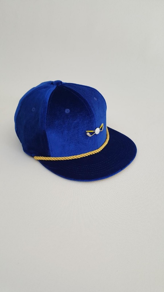 ROYAL BLUE AND GOLD VELOUR ADJUSTABLE GOLF HAT