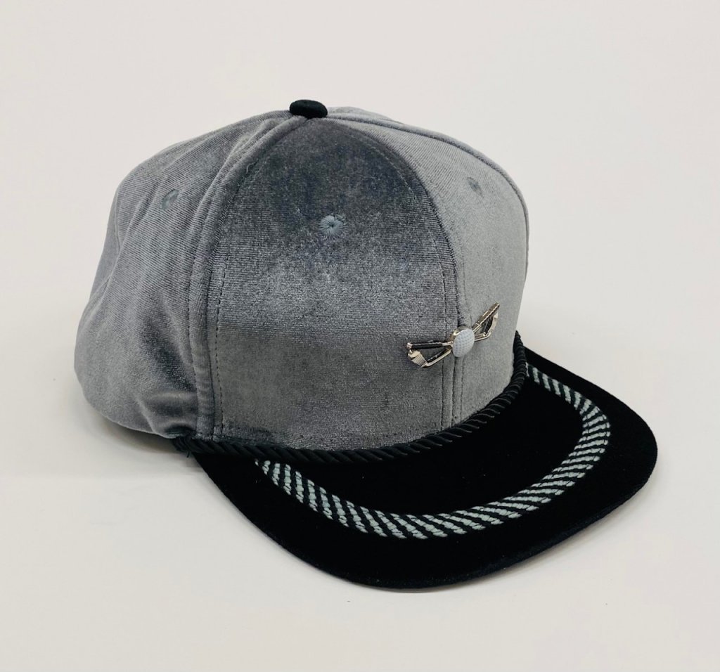 SILVER AND BLACK VELOUR ADJUSTABLE GOLF HAT