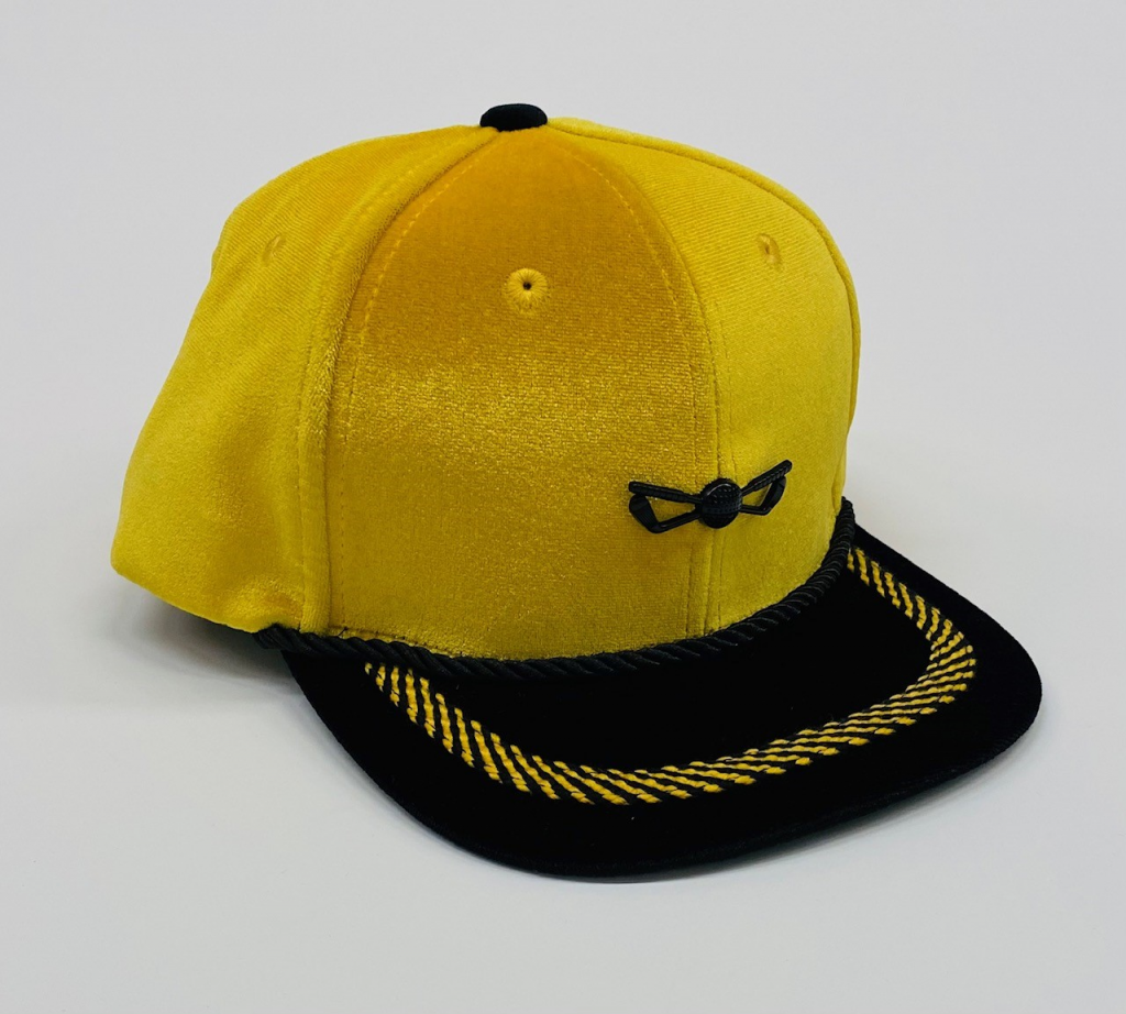 YELLOW AND BLACK VELOUR ADJUSTABLE GOLF HAT